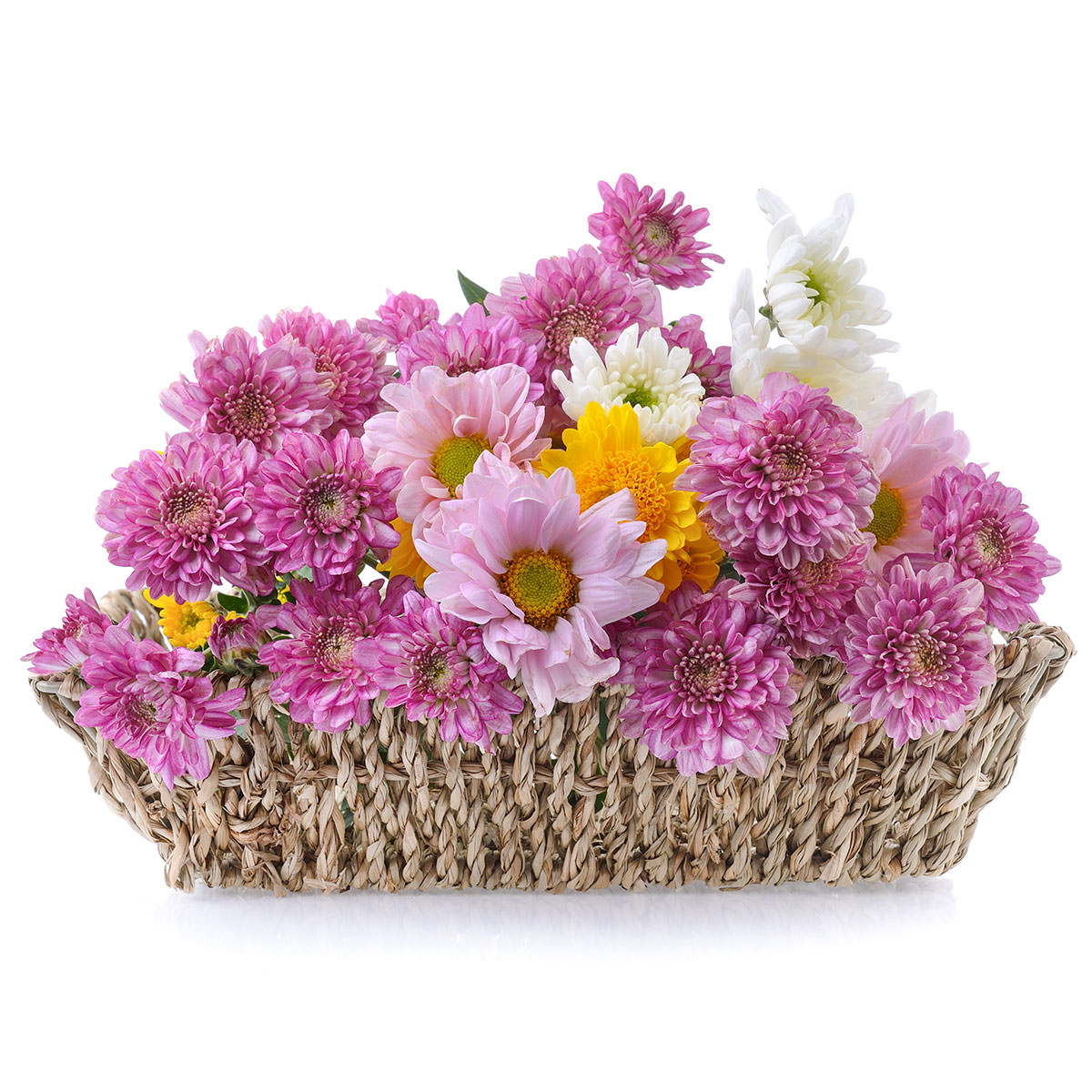 Эта композиция из хризантем в нежных розовых, сиреневых, белых и ярко-желтых оттенках создаёт атмосферу радости и тепла. Упакована в плетёную корзину, идеально подходящую для любого интерьера. Добавит уюта и станет прекрасным подарком для молодой мамы на выписку. Порадует своим очарованием и подарит незабываемые эмоции.